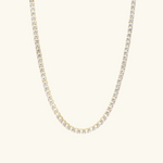 ABBY Klassisk Tennis Halskjede utstråler tidløs eleganse med glitrende diamantstein satt inn i luksuriøst gull. Perfekt for enhver anledning eller som en raffinert gave til en spesiell person.