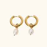 BETHANY Perleøreringer - Opplev tidløs eleganse med et moderne preg. Våre gyldne øreringer med naturlige perler kombinerer klassisk estetikk med raffinert stil.