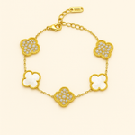 Klaver Deluxe Armbånd er det ultimate tilbehøret for den stilbevisste. Med fem glitrende kløver laget av krystaller, innfattet i 18-karat gull, gir dette luksuriøse armbåndet et elegant og sofistikert utseende.