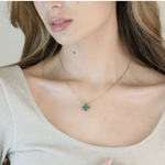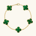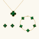 Oppdag vårt fortryllende sett med halskjede, armbånd og øreringer, som kombinerer tidløs klasse med moderne detaljer. Den ikoniske grønne kløveren, rammet inn i raffinerte gull, utstråler subtil luksus - perfekt for både hverdagsbruk og elegante anledninger.