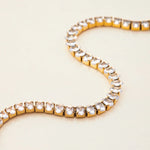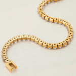 Strålende Eleganse med AVARIA - Oppdag vårt ovalformede armbånd, designet for å snu hoder med sin kontinuerlige rad av glitrende steiner i 18k gull. Dette armbåndet skaper en guddommelig balanse mellom delikat og dramatisk stil.