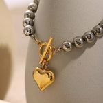 Oppdag AvariA's Alicia-armbånd! Med chunky sølvperler og et dramatisk gullhjerte, er dette armbåndet en perfekt studie i raffinerte kontraster. Den solide sølvperlekjeden gir en moderne stil, mens gullhjertependelen tilfører et klassisk preg. Dette er et stykke av stille selvtillit.