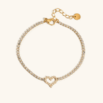 Romantisk og Bærbar Eleganse: Oppdag AVARIA's Patrice, en perfekt kombinasjon av en slank tennisstreng og et diamantinnrammet hjerte som fanger lys fra alle vinkler. Dette subtile smykket gjør alltid inntrykk, enten du velger å lagre det eller la det skinne solo.