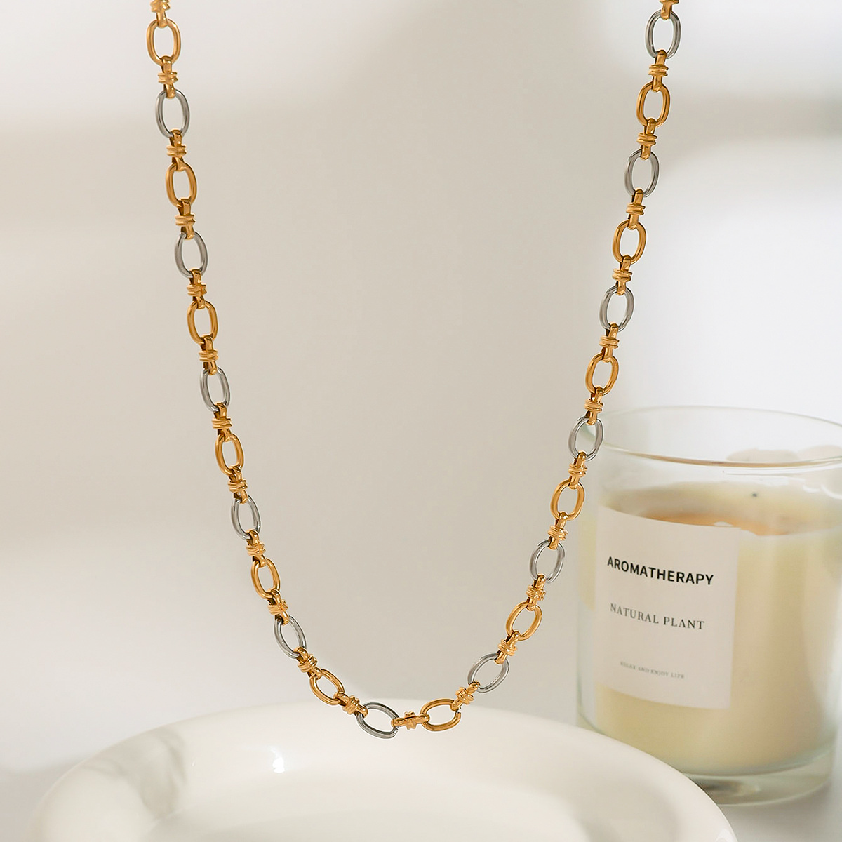 Lagert av høykvalitets rustfritt stål belagt med 18k gull & sølv, er det både vann-, svette- og varmebestandig (ingen misfarging, ingen oksidering).