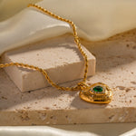 Caelus tilfører et preg av levende eleganse til ditt utseende. Dets diamantbesatte hjerteanheng og glitrende smaragd midtpunkt skaper en fengslende uttalelse, perfekt for de som omfavner en dristig stil.