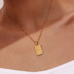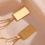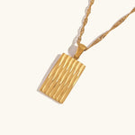 Oppdag Dahlia Gullhalskjede – et sofistikert tilbehør for den kresne! Dette halskjede har et rektangulært anheng med et intrikat mønster inspirert av naturens skjønnhet. Laget av 18k vanntett gull, sikrer det både kvalitet og holdbarhet.