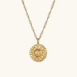 Soleil-halskjede er en fantastisk hyllest til solens blendende lysstyrke, designet for å fange blikket med sitt praktfulle mønster av bølgende solstråler.
