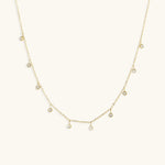 Halskjede "Juliet" - et elegant og sjarmerende tilbehør som pryder halsen din. Dette halskjedet kombinerer enestående skjønnhet med funksjonalitet, der et gullkjede holder en kaskade av små imitasjoner av diamanter, og skaper en fortryllende glans og bevegelse.