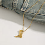 Kanalisér din indre cowgirl med Avarias Makayla! Denne sjarmerende gull støvlependant fanger ånden av det ville vesten med intrikate detaljer og et lekent design.