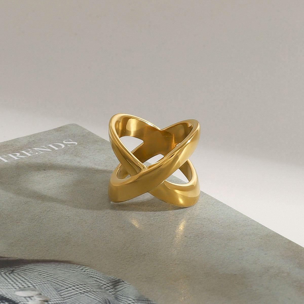 Møt AVARIAs Carolyn! Denne lille gullringen kombinerer enkel eleganse med et snev av glans. Den slanke ringen og det delikate korset gjør den perfekt for hverdagsbruk, og tilfører et subtilt preg av stil og tro.