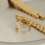 Oppdag AVARIA's Clestine-ring, hvor blomstrende glans møter delikat eleganse. Med sitt unike petaldesign prydet med glitrende kubisk zirkonia, skaper denne ringen et fengslende blomstermotiv som lyser opp ethvert antrekk.