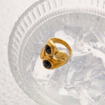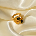 Liza Gullringen er en slående blanding av dristig geometri og iøynefallende lag, akzentuert med onyx. Dette stilige smykket er laget av vann- og hypoallergenisk 18k gull, som lover varig skjønnhet og trygg bruk.