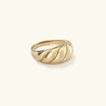 Gjør et inntrykk med Lorelei Gull Croissant Ring! Dette stilfulle smykket, laget av førsteklasses gull med en blank finish, er perfekt for å skille seg ut i mengden.