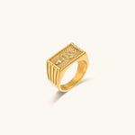 Forvandl stilen din med Miles Gullring! Dette fengslende smykket er laget av vanntett 18K gull, og har et unikt slange-mønster som tilfører intriger og eleganse til hånden din.