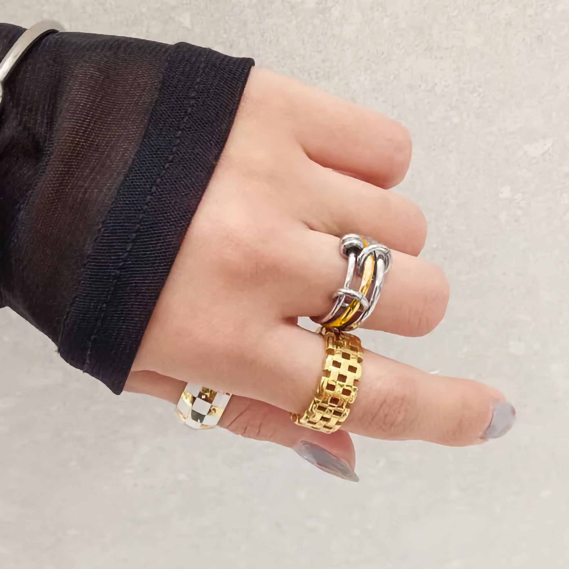 Miley Gull & Sølv Lagdelte Ringer" could be rewritten as "Miley Gold & Silver Layered Rings.