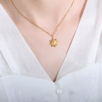 Oppdag vårt sol-inspirerte halskjede som kombinerer tidløs stil med et moderne preg. Den iøynefallende designen gjør det perfekt for enhver anledning, fra uformelle dager til formelle arrangementer. Med en glitrende 18K gullfinish tilfører dette smykket uanstrengt eleganse til ditt utseende.